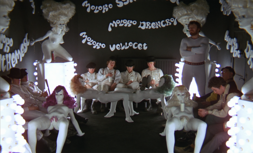 Unlike many of my pals at school, I wasn’t a fan of graphically violent movies. Gory horror movies were not my thing. Classic 80s slasher flicks were, obviously, right out. Nevertheless, I was obsessed with Stanley Kubrick. 2001: A Space Odyssey, and Dr. Strangelove led me, somewhat unwisely, to The Shining – a movie I love to this day. It was the adaptation of Anthony Burgess’s novel A Clockwork Orange that gave the 14-year-old me pause due to the controversial scenes of “ultra-violence” reported within. Nevertheless, I borrowed a VHS from a friend, and flying below the radar of my parents, as a cossetted wee lad, I set out to watch the spree of juvenile delinquency of Alex and his gang of Droogs. So much of the film is iconic – from the oft-Halloween-worn costume of Alex, to the Nadsat slang that gave many a 90s band its name. All that said, I don’t remember being particularly shocked by what, already in 1995, seemed a little tame in comparison.
